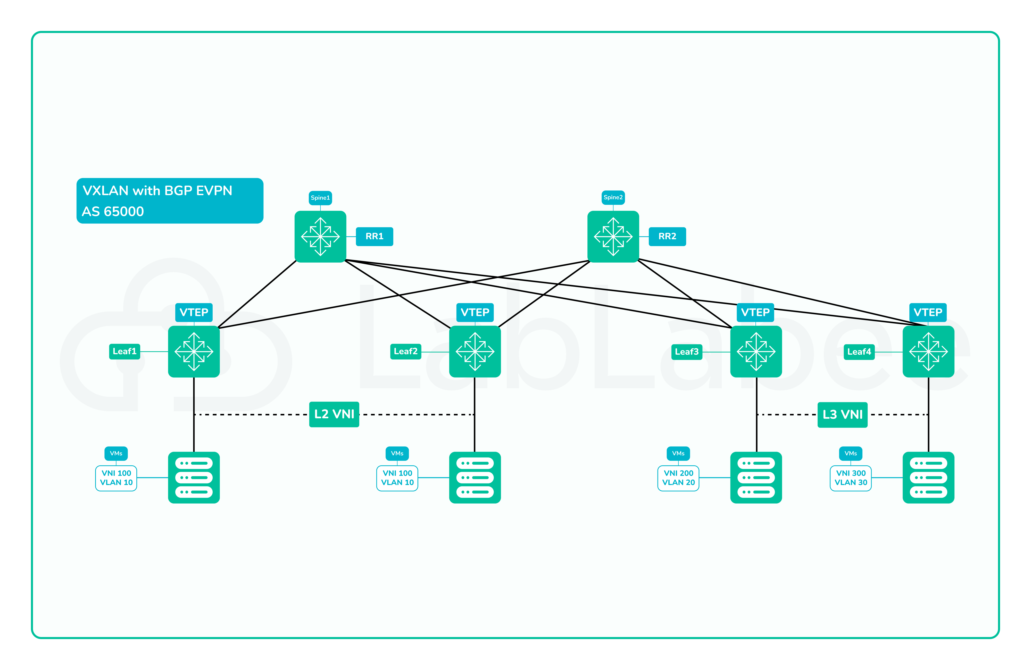 Unlock the potential of network virtualization with our EVPN, BGP, and VXLAN Lab: a comprehensive set of challenges designed for students eager to explore advanced network technologies. This course dives into the integration of EVPN for seamless Layer 2 and Layer 3 connectivity, BGP for robust routing, and VXLAN for scalable overlay networks. Through hands-on labs, students will gain practical experience configuring, deploying, and managing these technologies in real-world scenarios. Develop the expertise to design and operate efficient, scalable networks, setting the stage for mastery of cutting-edge networking solutions.